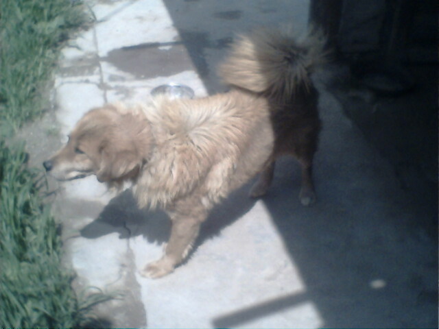 去年夏天,我家迎来了一位新的成员——大黄。它一身金黄色的毛在太阳的照射下闪闪发光,强健的四肢非常有力,但眼神充满忧郁。不喜欢小猫、小狗和怕脏的我,由于大黄的出现完全改变了。因为它,我相信只要真心去对待,便会产生友情,记得那次天下冰雹,大黄没有避身之所,我便用身体遮挡快速解开拴在大黄脖子上的铁链带到屋檐下,然而就这短短的几分钟时间,我们都被淋成落汤鸡。从此,它每次一见到我就会跑过来围着我撒撒娇,把我当成了好朋友。