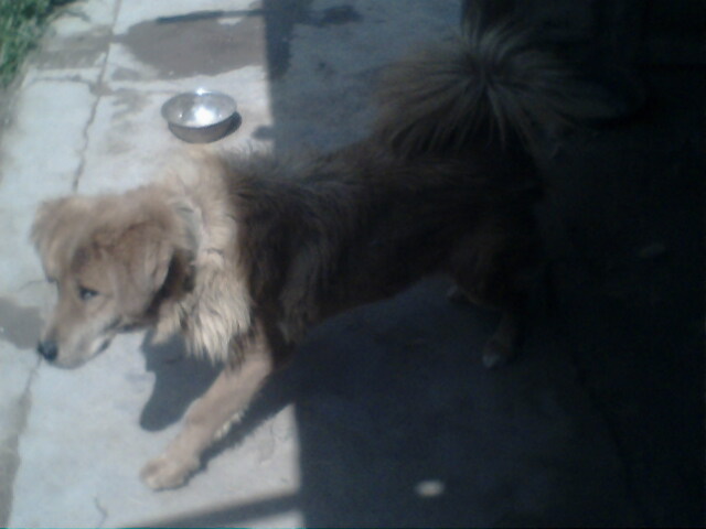 但是不管怎么样,它总是掩饰不住那双忧郁的眼神。是在请求我让你回到原来的地方那个,还是吃不惯现在的食物?妈妈不喜欢你进入屋子,它很听话,总是从外面望望从不进屋。也许它真的吃不惯现在食物,因为听爸爸说,它以前的主人是经常给它吃肉,而由于我们却······,所以我请求爸爸,把你带到另一个地方,好改变它那种忧郁的眼神。