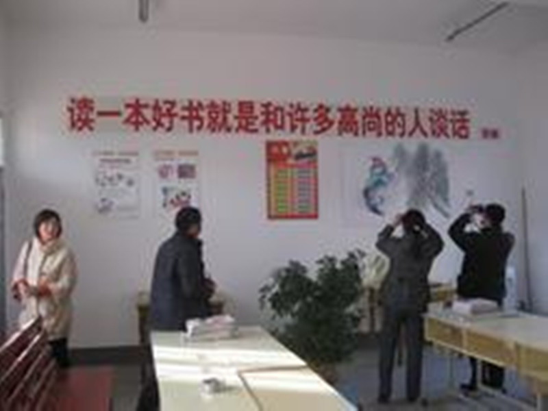 这个文化站并不同是很大,但是却给人的感觉很宽敞。铁制的大门上方镶钳着" 团结奋进,科学发展 "八个大字,整个院子里用水泥铺的,每天都很干净,院子中间有一个乒乓球桌,很多体育爱好者都会来这打乒乓球,一方面锻炼身体,另一方面也增长了人们之间的友谊,不仅有同村,还有别村的。 二层小楼,白色的墙壁,很多间房子,每一间都是一个藏宝室,每一间里面都有不同的东西,从下面的一层来说吧!第一间应该是站长的办公室,但却收拾得很整齐,有淡淡的家的感觉,里面有一台液晶电视,每天都有很多老人来这儿听秦腔看京剧,另有一番风味。同时还有三台电脑,可以帮助我们更好地学习电脑知识。紧接这是一个资料室,里面有许多大大小小的文件夹,应该属于机密文件呢!还要一间较大的房间应该属于会议室吧!