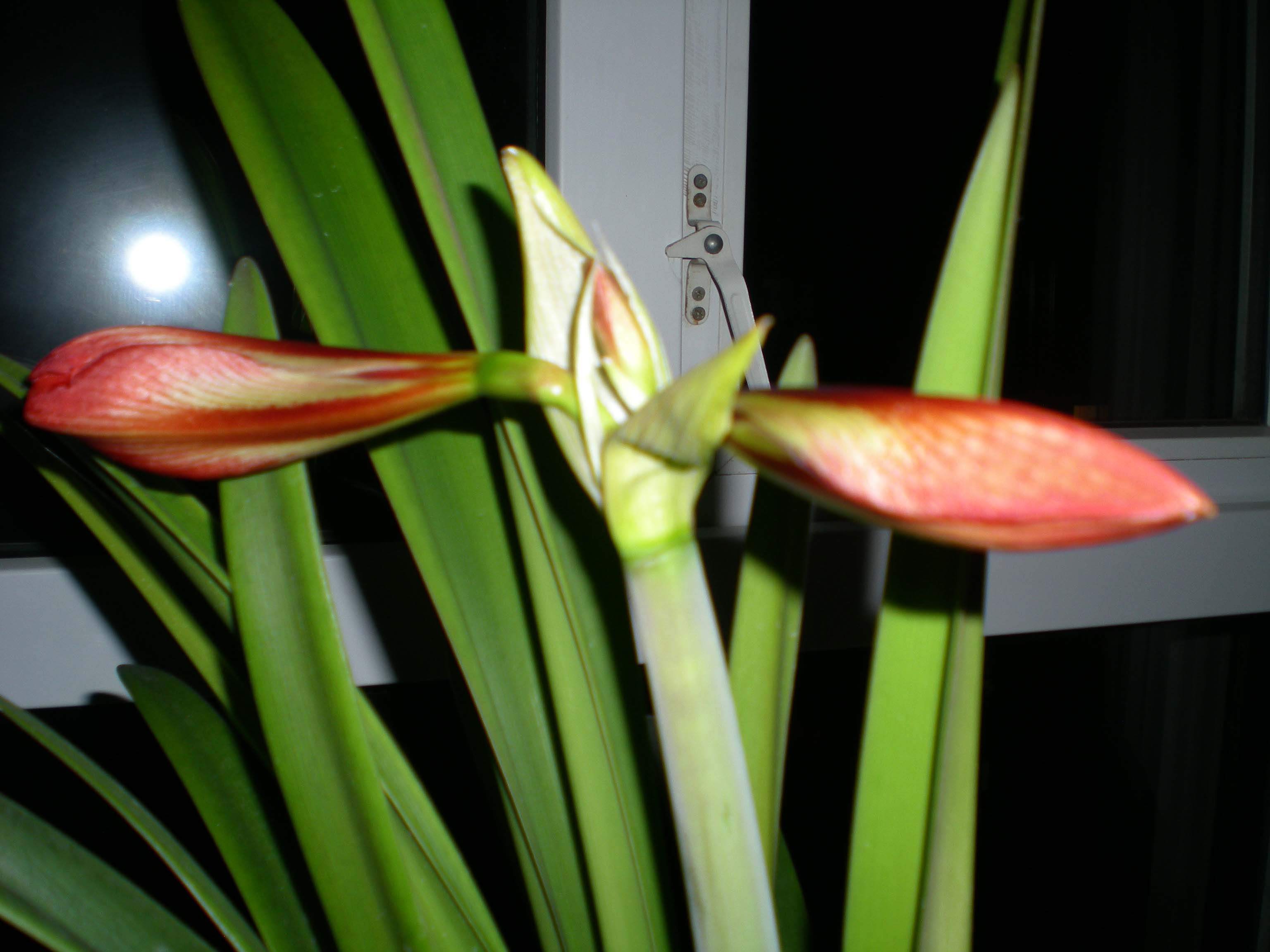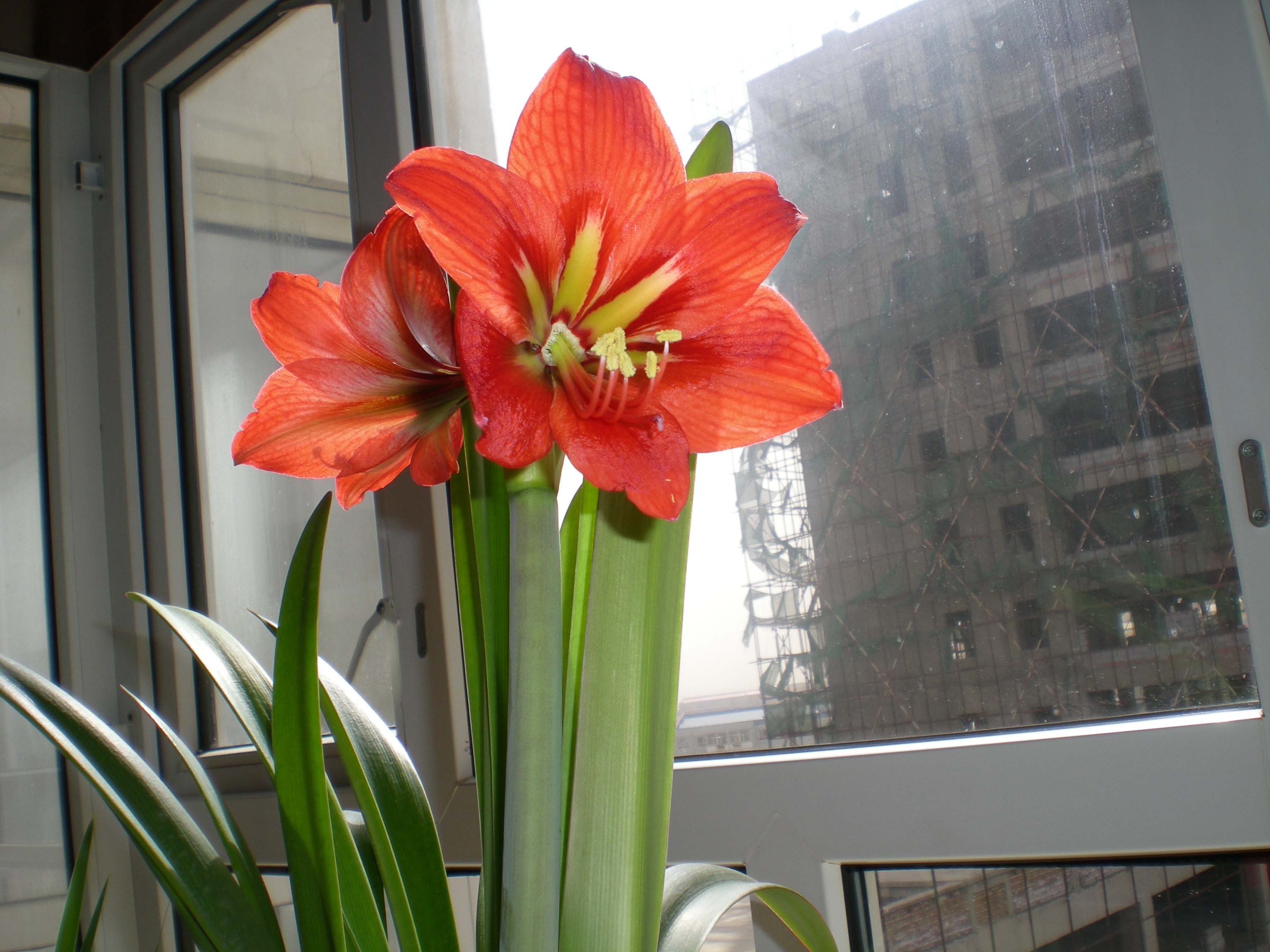 鲜花终于盛开了,红是红得很,但没有猜想的那么艳。整个花朵分成六片,层层叠叠比喇叭花好看多了,花心深红配有绿条,花瓣浅红,条条纹络清晰可见。花蕊不是想像中的蛋黄,红色的花蕊尖上顶着黄色的"帽子"。整个花朵特别美,大自然真是神奇,一朵花竟开得如此美。赞叹大自然,享受着等待花开的惊喜。