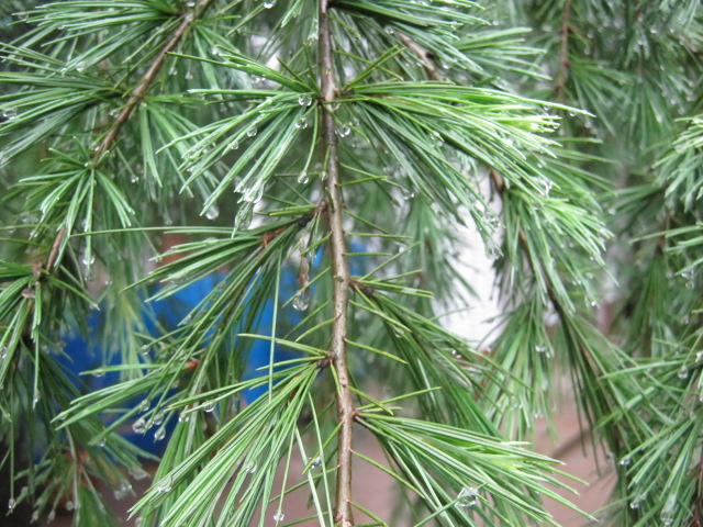 松针树像刺猬一样身上长满了刺,每当我碰到它时我都会感到针锥的一样痛。它长得大约有四层楼那么高,它的树干约有碗口那么粗!它有很多的枝干,每个枝干的尖头都像一把扇子。