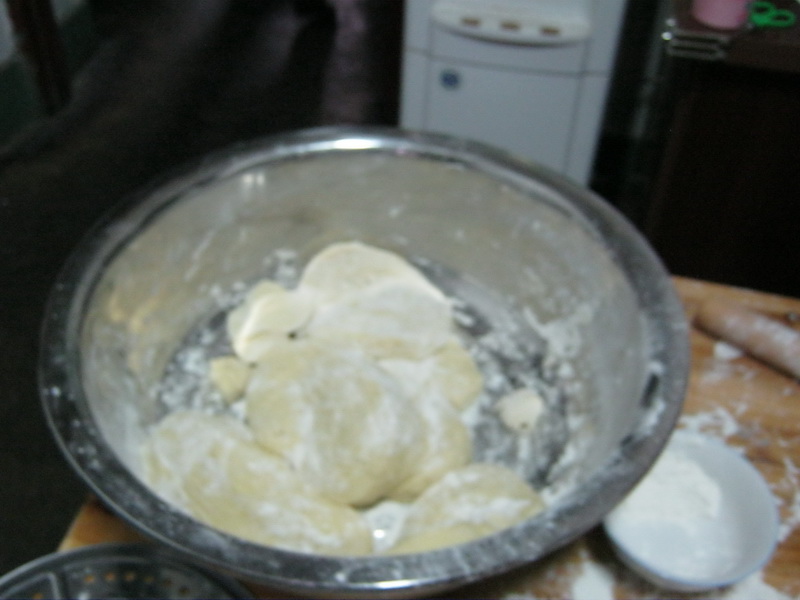 哥哥的面已经和好了,可我的馅还差的很远,哥哥看着我切的肉块和韭菜比花生米还大,摇了摇头,从我手中接过菜刀,把胳膊抡园,"咚咚咚"切了起来,站在旁边的我只能自叹不如。很快馅拌好了。哥哥又把面揉成面团。