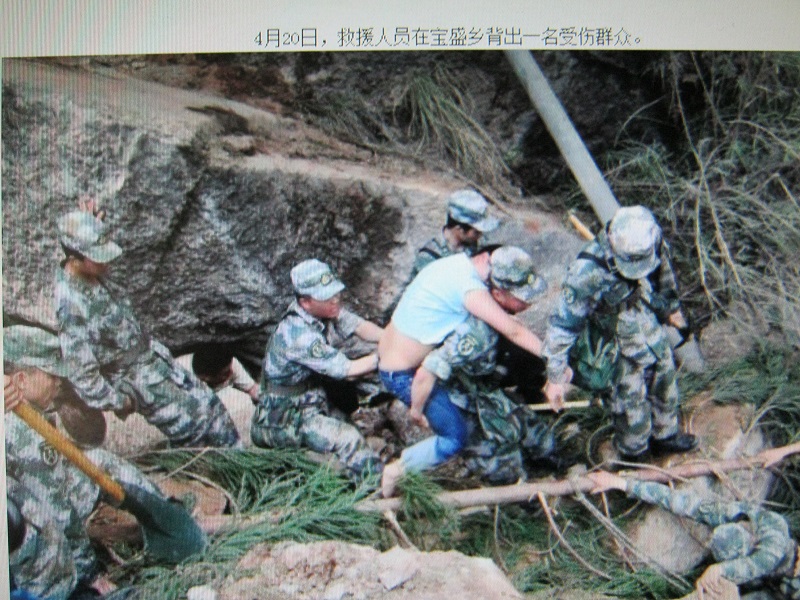 从电视里我们知道,雅安4.20地震使许多家庭失去了亲人,许多房屋倒塌了。但在地震发生后的第一时间,解放军及消防员就赶到了灾区,他们不怕危险、不怕牺牲,冒着不断发生的余震,迅速展开了救援。他们从废墟中救出了一个个幸存者,他们连续奋战,打通了一条条生命的通道,为救援争取了时间,一幕幕感人的事迹让人潸然泪下。