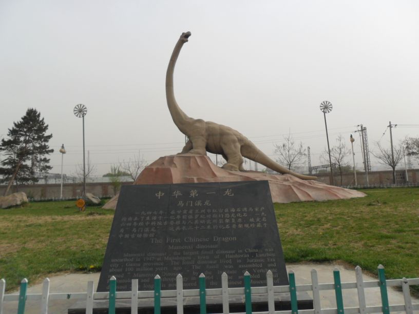 我们海石湾有一个美丽的广场,位于红古区政府的正对面,因为广场的草地里有一尊马门溪龙的石雕,所以叫华龙广场。