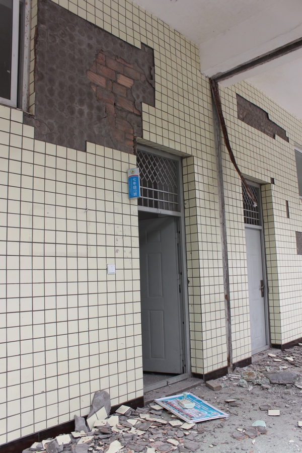 在2013年4月20日早晨8时02分的时候,因为是周末,所以有许多还沉浸在美梦中,而我也刚起床不久,并且正在洗脸,突然听见一阵轰隆隆的声音从地下传了上来,同时身体感受到剧烈的晃动,屋顶的瓦片开始往下落,因为我们已经过2008年5月12日的地震,因此知道这是地震来了,就叫上大家一起迅速而有序的从屋里跑了出来。