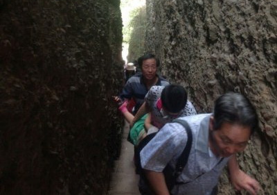 走着走着,我们就来到一座山的中间。这是由两座山构成的,它非常狭小,只能一个人走,我跟在我妈妈的后面走,他们都走得好快啊!我看着山壁都是吭吭,让我觉得它快要塌过来了,让我很害怕。