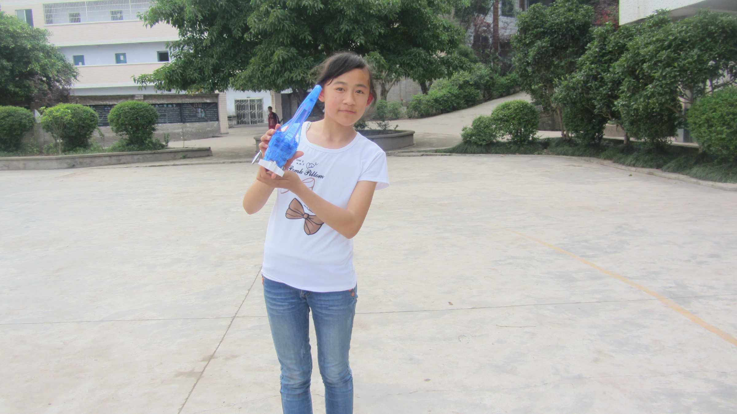 下午第二节课,江老师在广播里通知:请参加科技小组的同学,带上你们的作品到操场准备比赛!我一听,就兴奋起来,我早就等这一天了,我的飞机绝对是最厉害的:跑得最快,走得最直,因为我可是反反复复改进了N次啦!