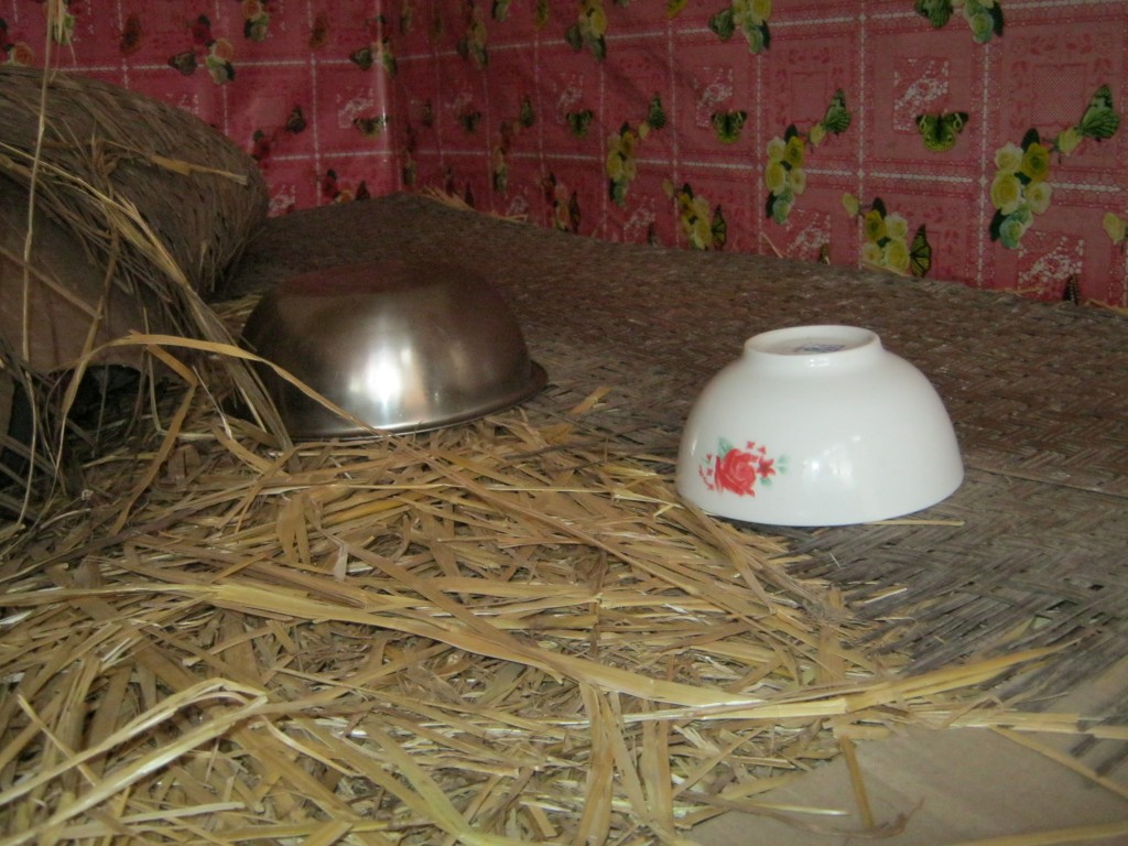 土炕作为家乡人的‘‘活宝’’,其制造过程更是含糊不得。首先要用成块的土块砌成土块的雏形;然后,用大石板支起,用和草的泥巴将其刷平。刷平后,土炕要用大火烧干,烧干后,在炕上铺一层草,上面各个地方扣一些盆类的东西,目的是检验土炕是否已干,如果土炕还没有干,盆里会有小水珠,就像人身上出了汗,故,家乡的人们又戏称此过程为‘‘出汗’’。