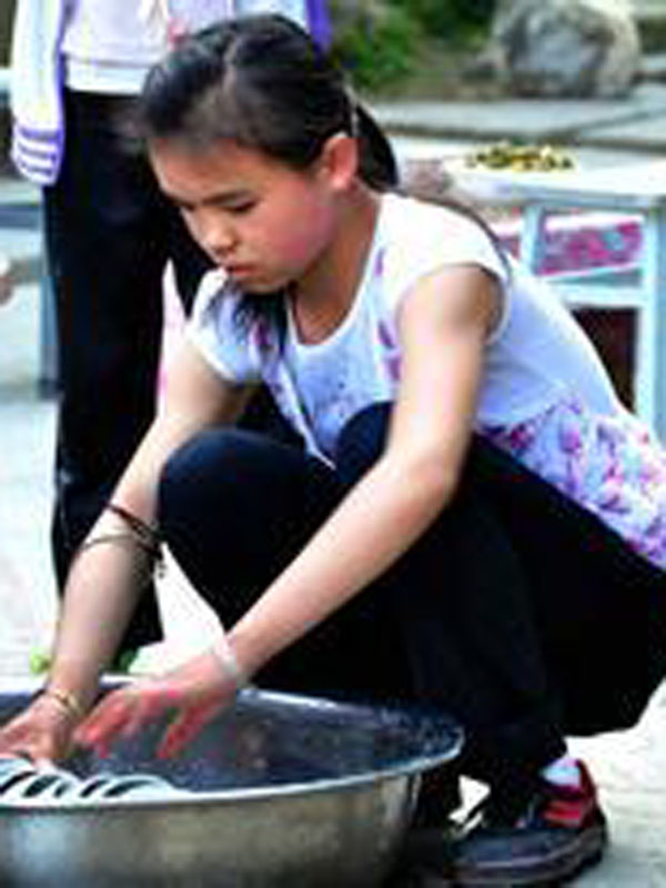 可上随着我慢慢长大,我也觉得我该为爸爸妈妈做点力所能及的事情了。今天爸爸妈妈都很忙。他们交给我一个任务,那就是吃完后洗碗。