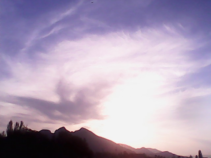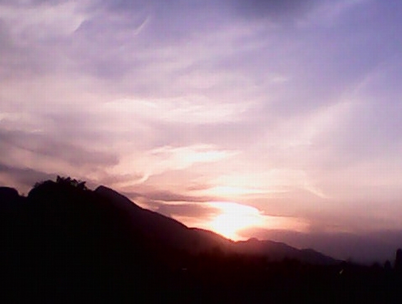 乡村。黄昏。 蓝宝石一样的天空透着宁静,流着一丝丝淡淡的云,在天空中无忧无虑的飘动,或浓或淡,或静或动。像少女透明的纱裙,像刚刚梳理过的羽毛,像远处的山峦,像平原上银亮的溪流。它们如同年轻的少女,款款而行,仿佛在游历什么美丽的景致。