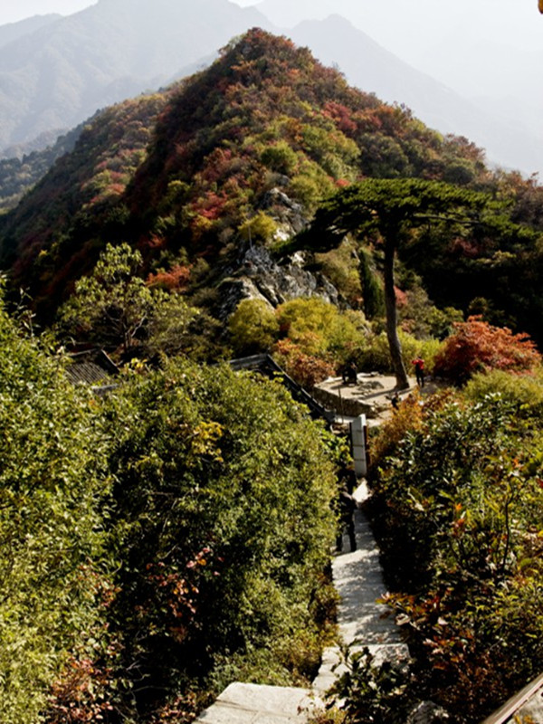 狭小的江口镇被群山环绕,透出一种和谐、安逸的氛围。回过头来,继续向前走。到达观音庙的小院子里一看,十分冷清。从这里远望江口小镇,感觉更加的美丽。