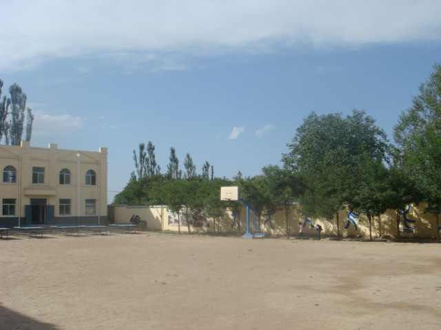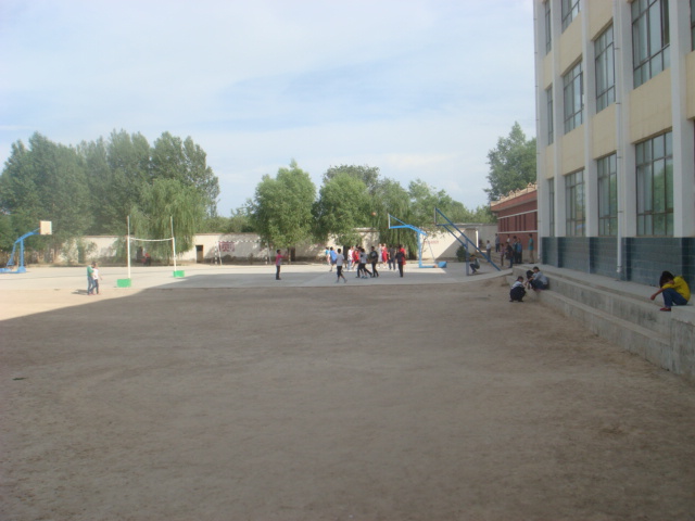 母校像一个可爱的小娃娃。在炎热的夏天里,这个小娃娃热的口干舌燥(地上的蒸汽都没有了),这时,便会有几个小同学提着水壶,迈着欢快的步伐来到操场上洒水,不一会儿,整个操场湿漉漉的,这时他便舒心地笑了。真可爱!
