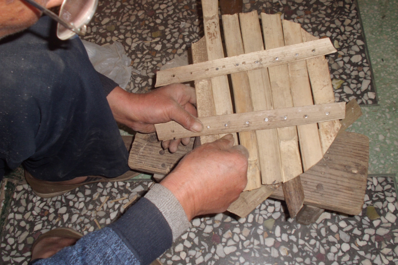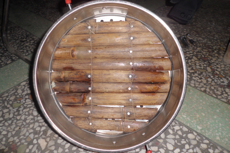 竹板,是农村里常见到的东西,爷爷将竹板锯成长短不一的竹条,用笼篦把它们连接到一块,做这个东西不仅费体力,还费脑力,要充分考虑到竹板的长短,与笼屉的大小是否合适。