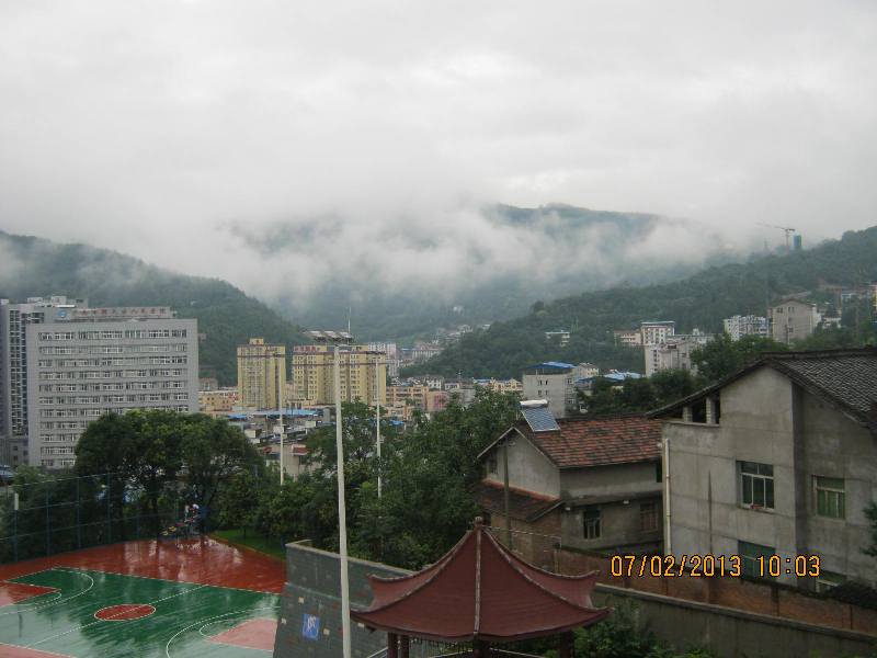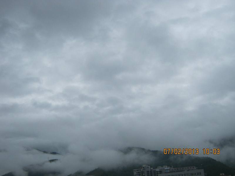 一道闪电,似乎划破了天空;接着是一阵震耳欲聋的雷声;山边的云滚滚而来,虽是白天,但天空却实黑压压的一片。终于——下雨了!