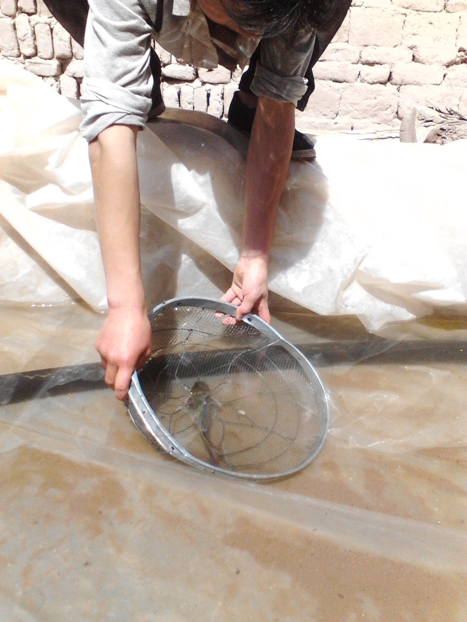 于是,我赶快来到小沟前。刚开始,我摸了半天也没有得到一条鱼,后来我想了一个办法,用我们家的筛子来隔了一下,总算捉到了几条。我赶紧去把它放进了鱼盆中仔细观察:嘿,真漂亮,银白的身子,大大的脑袋上嵌着一双鼓鼓的水汪汪的眼睛。它在盆中游来游去,神气极了。