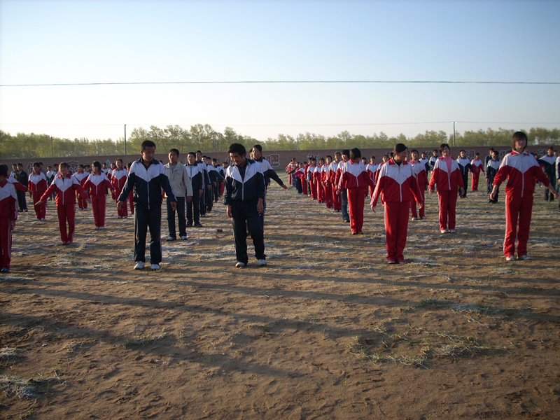 这是八年级四班的体操表演,他们各个朝气蓬勃穿着整齐有序的衣装,更显出现出他们的气质。他们步调一致、挥动有力。突现出21世纪中学生的精神面貌,以他们的动作我们可以看出他们严谨的纪律与成果。他们的口号响亮有力, 喊出了每个同学的心声,是的我们必须奋斗不息,理想的成绩,三分命注定,七分靠打拼。