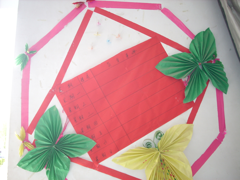 一个个活泼的小精灵将自己的家装饰成一个温馨而美丽的仙境,但更为出众的是在墙壁上还贴着一幅幅绚丽多彩的图画。那是这小精灵的聪明才智,心灵手巧造就而成。还有那用纸折叠的飞鸟,满载着她们自己心中的梦想,那一幢幢房屋、一桌桌佳肴。