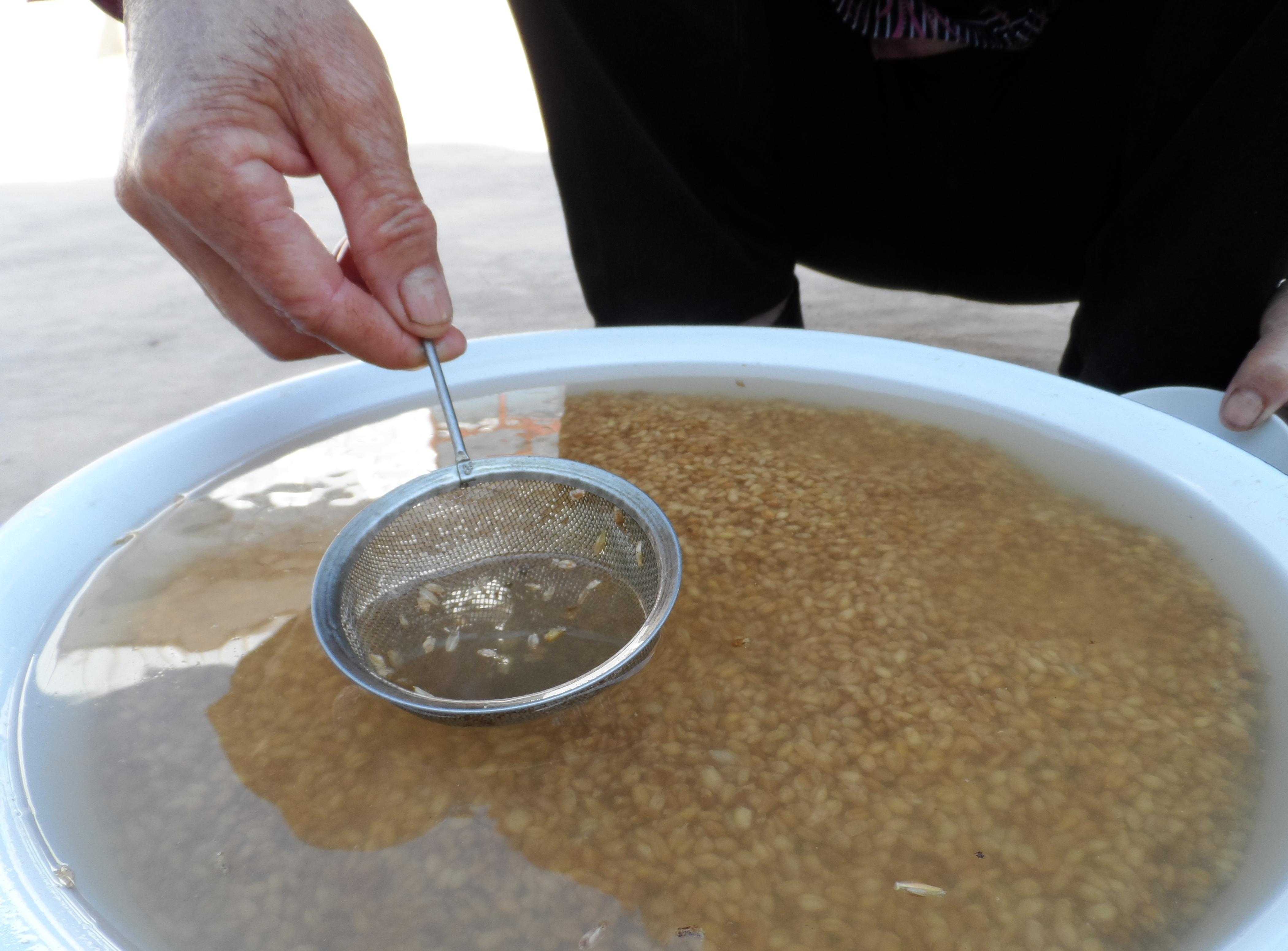首先,原料。其实没那么复杂,就是我们天天吃的粮食,但一定得是未磨的纯粮食。这活儿得交给有经验有耐心的老奶奶干。你想啊,盛半簸箕粮食,坐在阴凉下,簸呀,筛啊,捡呐,要把不饱满或有病害的全挑出来,只留下"饱满的"完整的"。这活儿要是交给现在的年轻人,肯定干不了。 接下来是洗干净。这是最简单的一道工序,就是找一盆子,把捡好的粮食倒进去,再冲上凉水,反反复复的将麦子上的灰土、麦皮都淘洗掉,第二步淘洗就完成了。