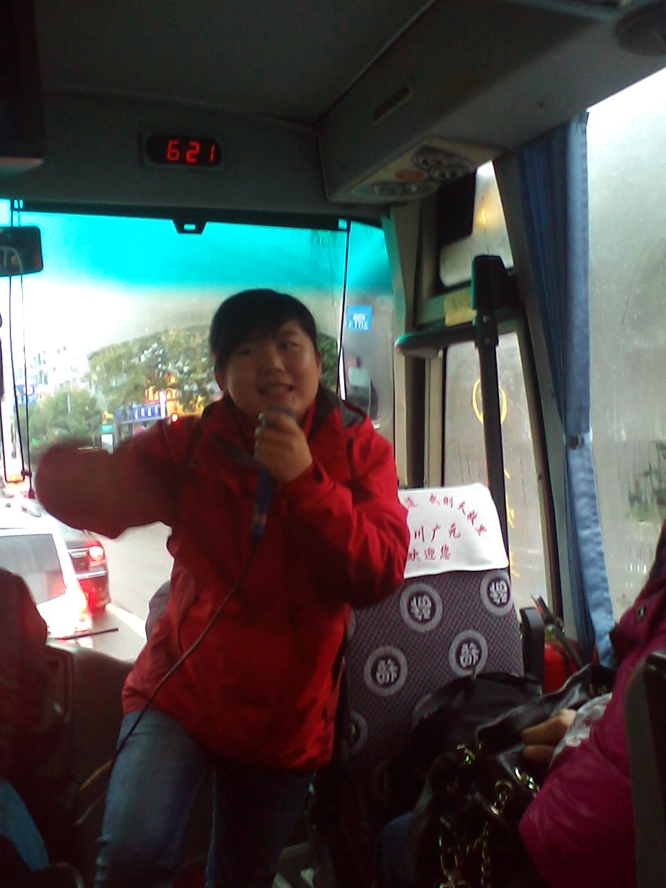 尊敬的各位游客,大家好!欢迎来到广元康徽国际旅行社,我代表本旅行社欢迎大家的到来,我姓李,大家可以叫小李,或者是李导,那么坐在我身旁的这位司机师傅姓黄,大家可以叫他黄师傅,别听他的名字叫黄师傅,可开车的经验那是相当的有技术,在我印象中他开车二十几年来从未发生过一次安全事故,所以大家把生命交给我们的黄师傅那一定是没的问题。大家可以放一百个心的旅行,最后,预祝大家行的安全、住的舒坦、吃的满意、游的痛快、购的称心、娱而得乐。
