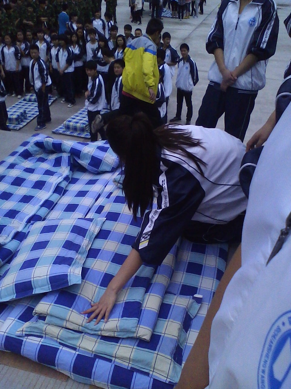 今天是2013年5月9日,这一天有到来了,我校每年一次的叠被子比赛就要拉开帷幕呢!我想,今年的叠被子的冠军将会落在谁的身上,同时,我又担心,担心谁又是今天的参赛者,因为今年的比赛不同往年,叠的好当然有奖金,差的话,遭到惩罚,还要向全校公布,拿到班上考勤,更让人意想不到的是不是班主任推荐,而是随取抽样,点到谁就是谁,别无选择。