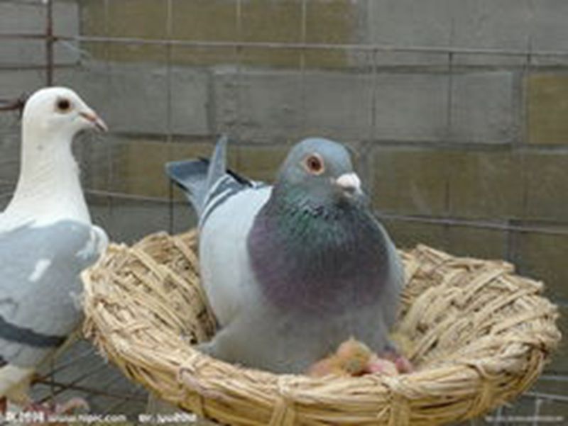 有一天,我发现鸽子卧在窝里一直不起来,爸爸告诉我:"鸽子要下蛋了。"果然,过了几天一只鸽子就下蛋了。我拿去营养品给它吃。又过了18天以后,两只小鸽子便出生了,它们的身上就只有黄色的小毛,远远看去,像只大肉球……