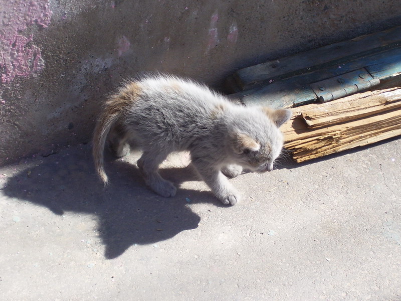 这是我舅舅家的一只袖珍小猫咪。此猫非彼猫。远处看,活像一只耗子,因为它的尾巴不仅没毛而且又小又尖,很是有趣。身材矮小,毛色与老鼠都很像,所以经常有人误把袖珍猫当老鼠追着打,不过它一点也不悲伤。相反,它性格十分活泼好动。