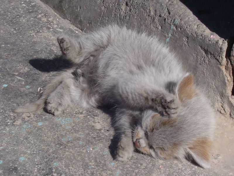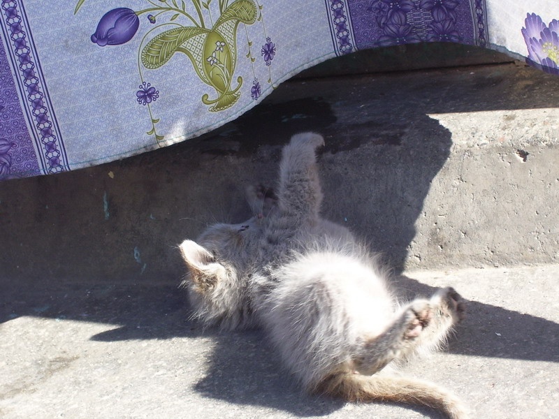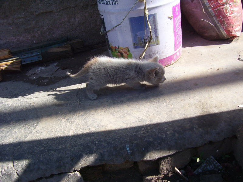 有时它很懒惰。瞧,它侧卧在门坎下,沐浴着阳光,悠哉游哉地睡起 大觉。不论路人怎么吵怎么烦,它就是不管,很是悠闲。真担心它这体格在门坎下睡觉万一被人误踩了怎么办,真是的。