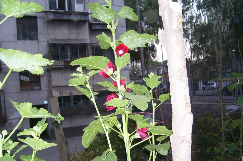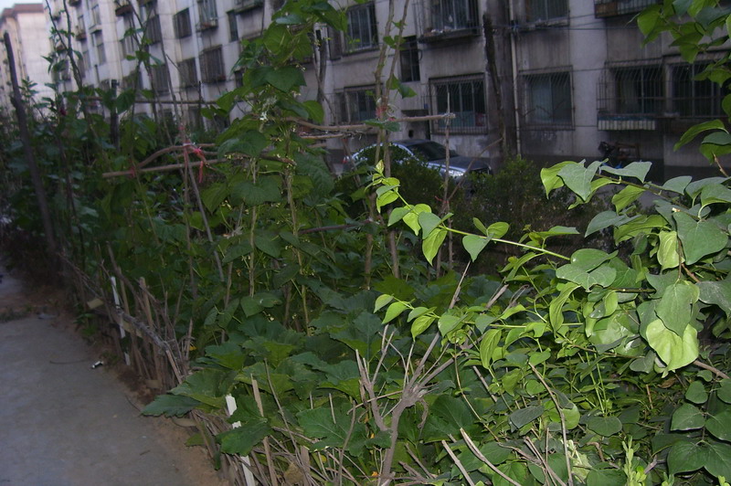 这是一株喇叭花。你们可能会想菜园子哪来的花。其实着株喇叭花是一颗种子经过一次狂风吹过来的,久而久之就在着生根发芽,与一棵树相互依靠,茁壮成长。