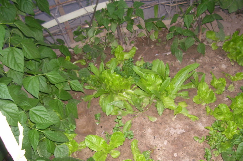 看!这是生菜,只要洗净就可以生吃。图中两棵大生菜周围有一圈小生菜,就像一群孩子在绕着父母亲转圈圈一样,很是温馨。