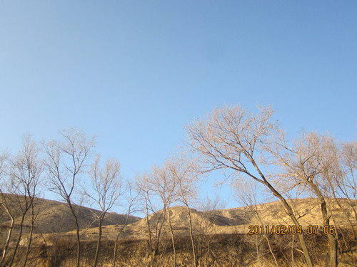 因为我的家乡地处西北,属于黄土高坡地区,所以天气较冷,四季中冬季最长,风雪天气很多,经常因为雪厚而出不了门。不下雪时,山上会有一层厚厚的树叶,数目也都只剩下光秃秃身躯。