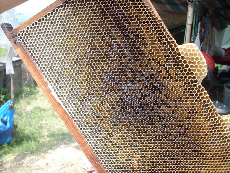 这块板上有许多蜂窝状的孔,看起来晶莹发光的空中就充满了蜂蜜。那么他们是怎样将这些点滴的蜂蜜取下来呢?