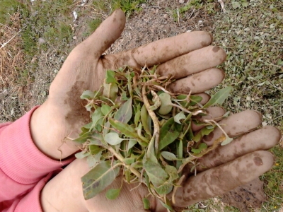 说不累那是骗人的,带着成就感的汗水直往下滴答着,你还是弯着腰吧,这样才会稍微好过一点。都趴了一天了,这腰啊也是有惯性的,等你站直了身子,就给你来个大接骨,全身的关节都活跃起来。还有我那可怜巴巴的手被泥土给腐蚀了。 不准叫苦喊累。