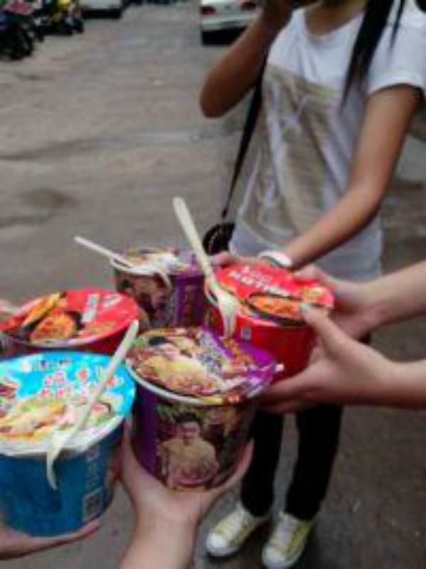 今天我们下课后就准备去白鹤山,走在山下的时候。我提议我们一人买桶方便面拿着,开始的时候她们都有点不情愿,结果在我的逼迫下我们一人买了一桶。