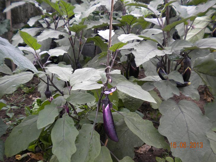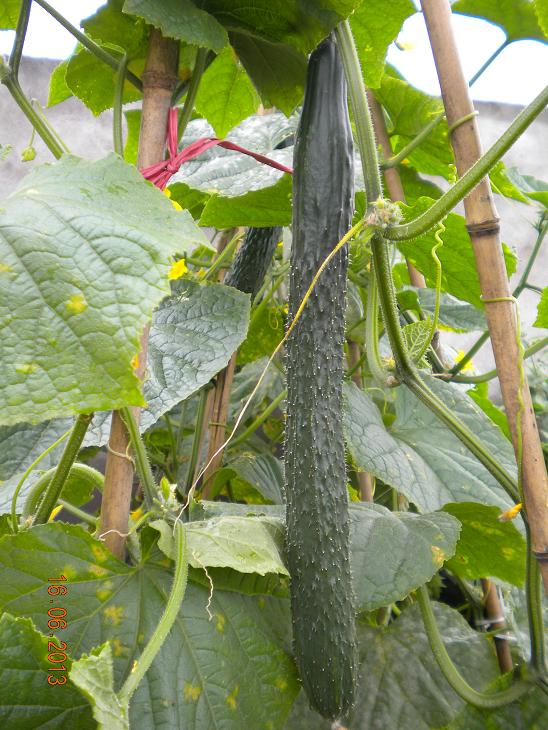 菜园的第二个部分种的是丝瓜、苦瓜、冬瓜和南瓜。丝瓜的藤可以爬很高很长,开出的花大大的、黄黄的,非常鲜艳美丽,连我的彩笔也涂不出那种颜色。现在瓜藤上已经结出了长长的、嫩嫩的各种瓜了,有的在架上,有的在地上,真是好看极了。