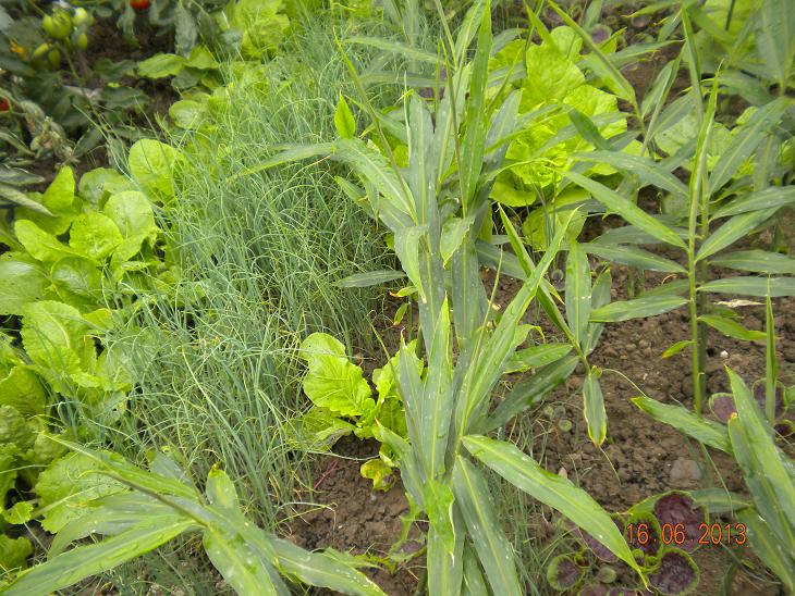 第三部分种的是香葱、姜、韭菜和蔊菜等。我喜欢吃蔊菜,听说它是生血的,又很下饭,所以我每次都会吃很多。外婆的菜园怎么样?是不是很丰富,很诱人呢?欢迎大家来参观品尝哦!