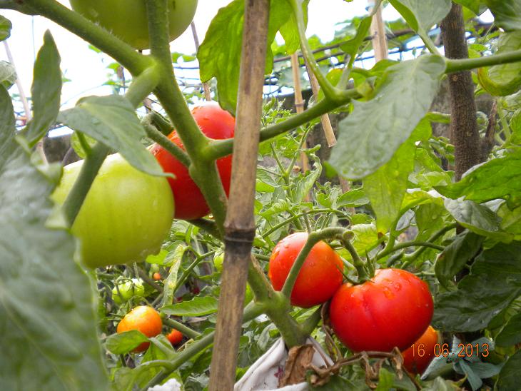 我把外婆的菜园分为三个部分。第一部分种有又大又饱满的四季豆和豇豆,粗壮肥嫩的茄子,又大又红番茄,像士兵一样威武的辣椒和清脆可口的青白黄瓜。其中我最喜欢的是番茄。番茄苗栽上后,很快就长大开花了,大约天气转热的前几周,就会结出青番茄,就像小树上结了一个个青皮球,多惹人喜欢呀!慢慢的,青番茄又长大了一些,于是我摘了一个叫外婆蒸给我吃,蒸熟的青番茄味道好极了,一口吃下去又酸又脆,可下饭了。我想:红了的番茄一定更美味吧。等啊等啊!我终于等到番茄变红了,看着它们像一个个红灯笼似的挂在枝上,把番茄杆都压得弯下了腰,我数了数,天啊,有棵竟有二十多个番茄呢!这不禁让我想到了"黄四娘家花满蹊,千朵万朵压枝低"的情景。红番茄可以生吃,可以凉拌,可以烧汤,还可以做番茄炒蛋,味道也是又鲜又甜,我忍不住给它取名叫水晶番茄。