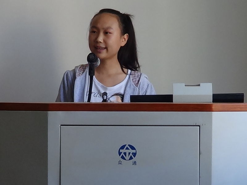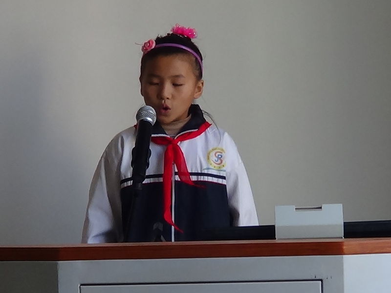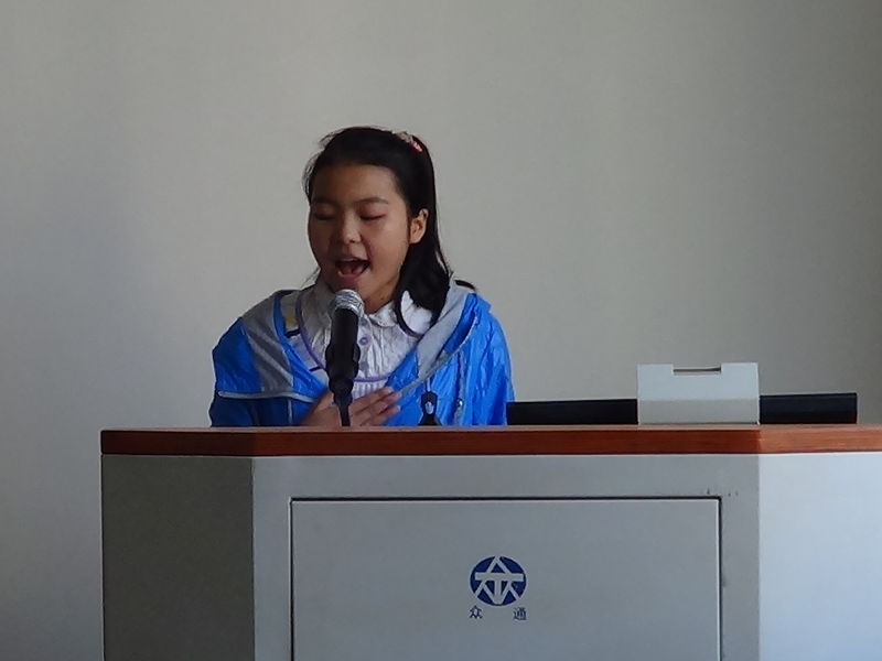 你看,这是来来自红五小学的一名小学生,她演讲得多投入啊!