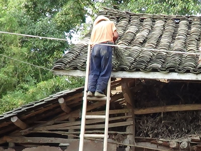 我原以为,翻房子就是把屋顶上的瓦全换掉,其实不是,翻房子只是把坏掉的瓦换掉,把有脱漏的地方再重新盖好,只要不漏雨就可以了。