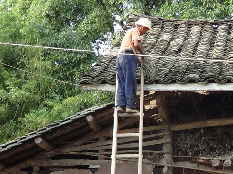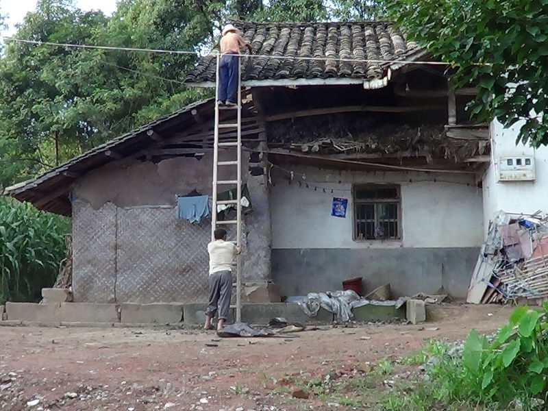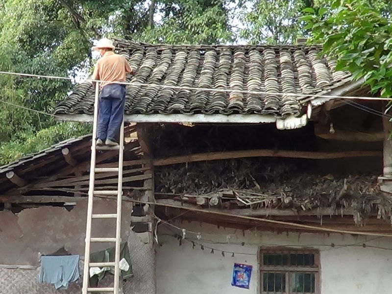 还有就是瓦房住久了,就得去翻修。我们这地方叫做“翻房子”,家庭经济宽裕的人家,隔个一年多、两年就要把屋的上的瓦翻一次,不宽裕的人家,也就只能将就着了。