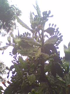 它的周围是用篱笆挡住的,但里面也有一些树木。其中有一种树身上长满 了高刺,叶子很大,呈半圆形,它还会开花,是红色的,长长的。在我小时候,就常把这些花摘来做成花环,很是美丽。