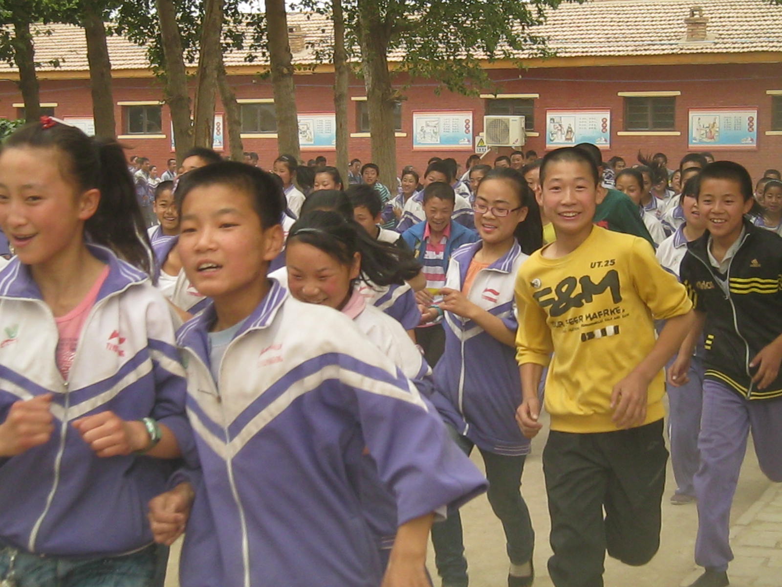 秩序井然的同学们很快地跑出了教室,好像灾难真的来临了,飞一般地冲向操场。同学们的脸上充满笑容,充满着对灾难的警惕性。