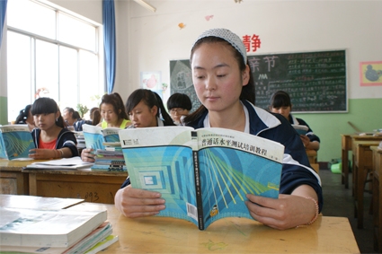 读书是一件十分享受的事情,在书里你能看到另外一个世界。瞧瞧同学们都捧着同样的书看着,究竟是一本什么书让同学们这般的用心呢?走近一看,哦,原来是普通话能力测试教材呀!就是,对于我们幼师专业的同学来说,普通话非常重要的,听老师说,这学期期末考试前要考普通话,所以同学们才这样努力啊。