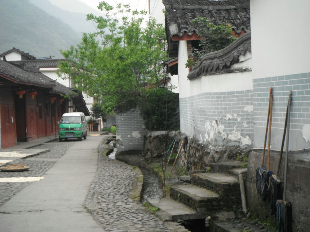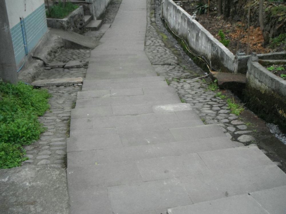 茶马古道主要是由三大部分组成,有石板、碎石和一条小溪。石板铺在中间,碎石铺在石板的两边,铺碎石的目的在于防滑,因为雅安素有“雨城”之称,每年的降雨量很充沛,因此在雨天走石板会很滑,所以便铺上了这些碎石,如果你离近看,会发现碎石的颜色也不一样,还有的就是在石板上写有一些名人名言什么的。