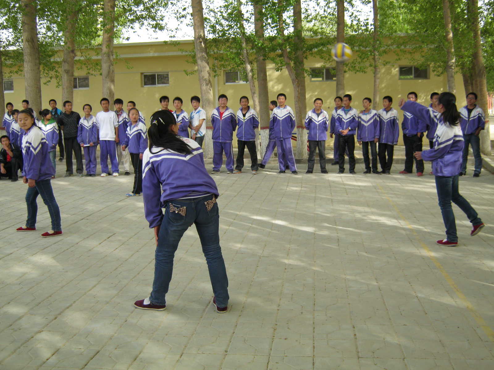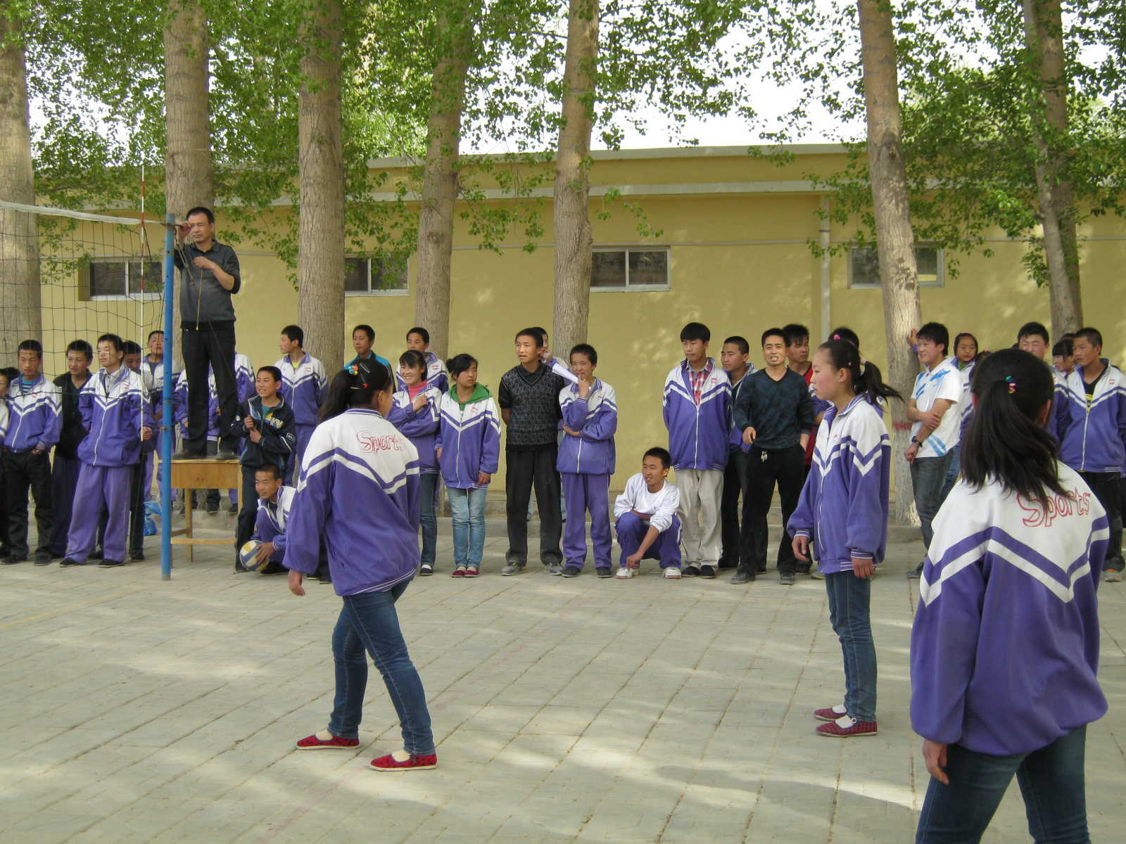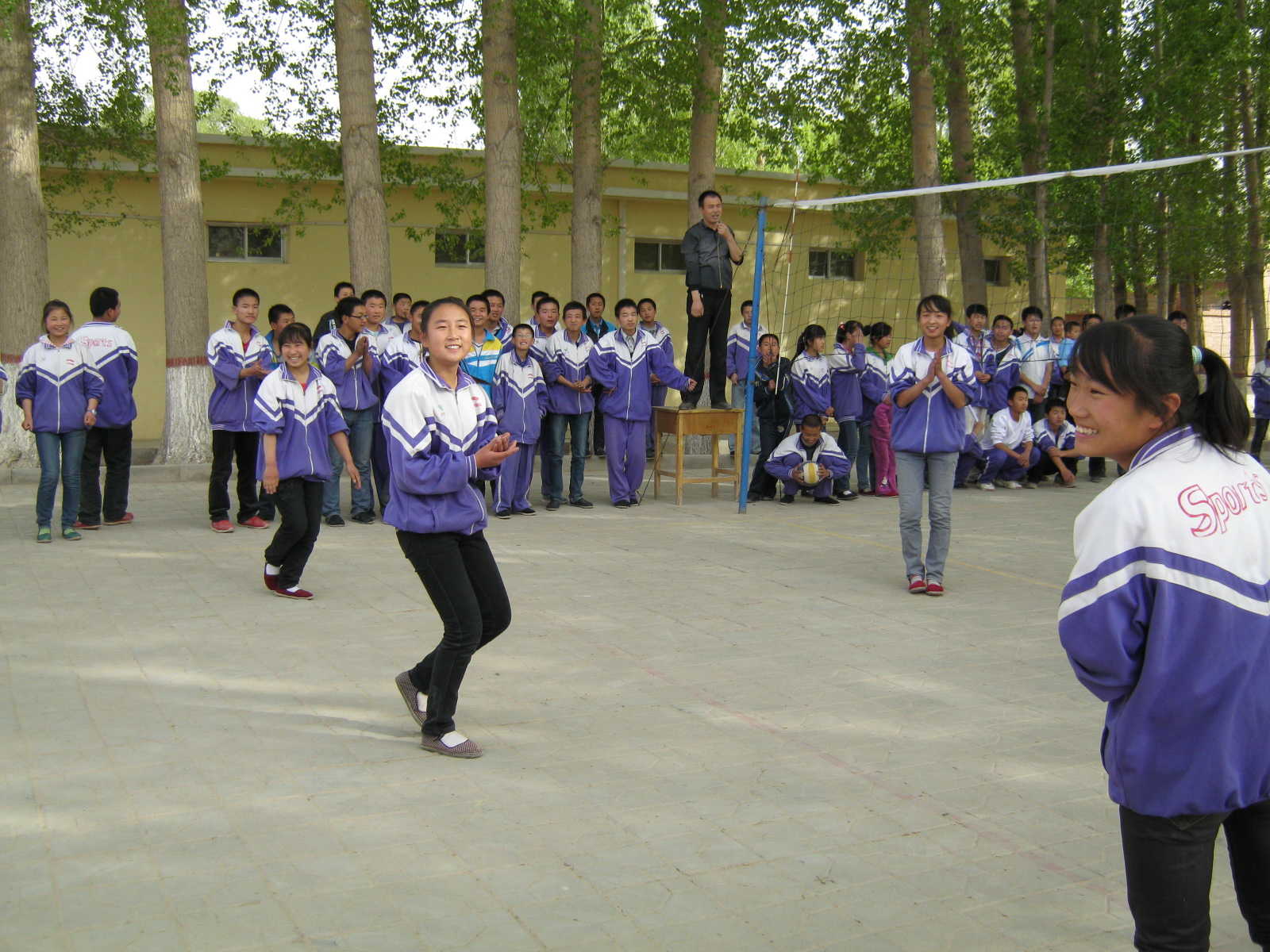 面对我们的"旋转球", 七年级二班的选手你推我让,球着地了。最后,他们失去了最佳的机会,只能与胜利说"baybay"了。排球不仅陶冶了我的情操,而且提高了我的心理素质,我喜欢打排球!