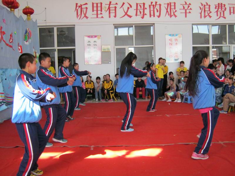 演出开始了。同学们早就准备好了精彩的节目。唱歌、跳舞、小品,节目一个接着一个,掌声一声连着一声。看,我们班那七个同学的舞蹈跳得多带劲,那可是风靡全世界的《江南style》,同学们都张大嘴巴观望着,有的觉得看的不带劲,干脆站在了桌子上,椅子上,老师命令他们坐下,趁老师一转身,孩子们又站了起来。