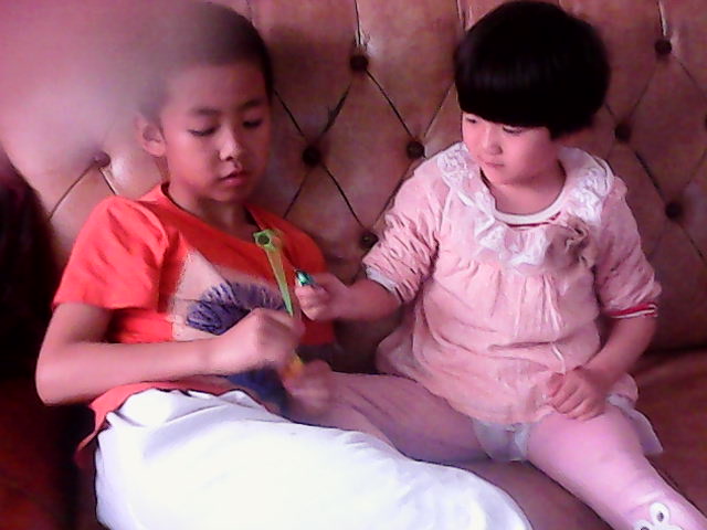 每次我去她家,她都会缠着我说:"昊昊哥哥,你陪我玩"!我玩什么她就玩什么,而且还抢着玩。我不玩了她也不玩了,又在我旁边摇着我说:"哥哥,你陪我玩",真是让我很无奈。
