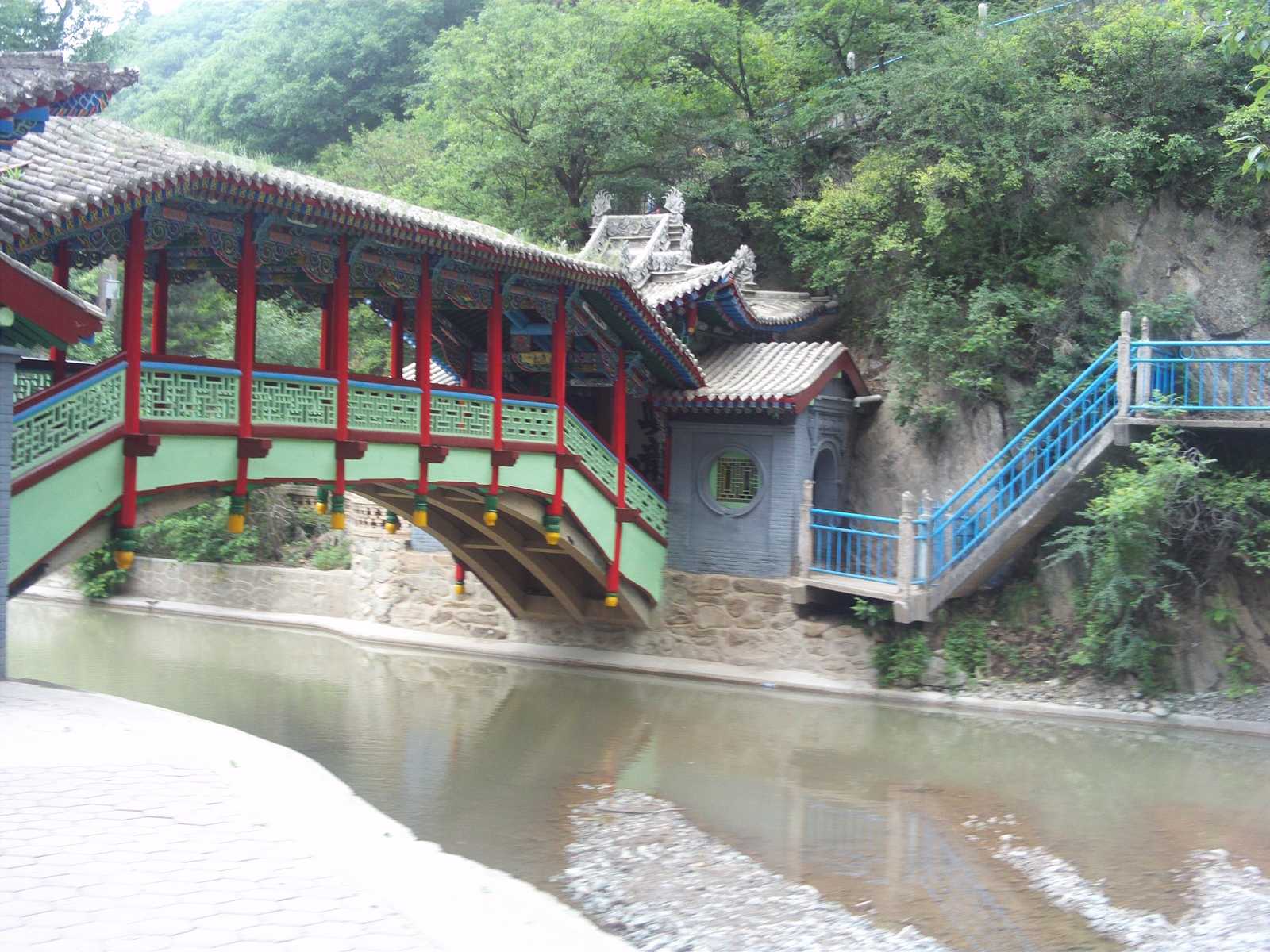 向前踱步,一座木桥赫然出现,它叫"云龙桥"是唯一连接东西山的桥。其结构典雅精美,颜色清然娟秀,又称"卧龙桥",已走过221年历史的它,默默矗立在东山脚下,用一份静谧,向游人诉说它的古老及神韵。穿过云龙桥,踏上青石阶,开始在蜿蜒的山路上前行,那抹绿色填满了所有的视野。当风穿过树林,莎莎作响,沁人心脾的凉爽驱散了所有的闷热与烦躁。