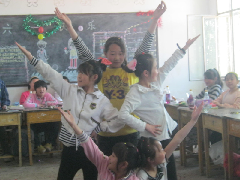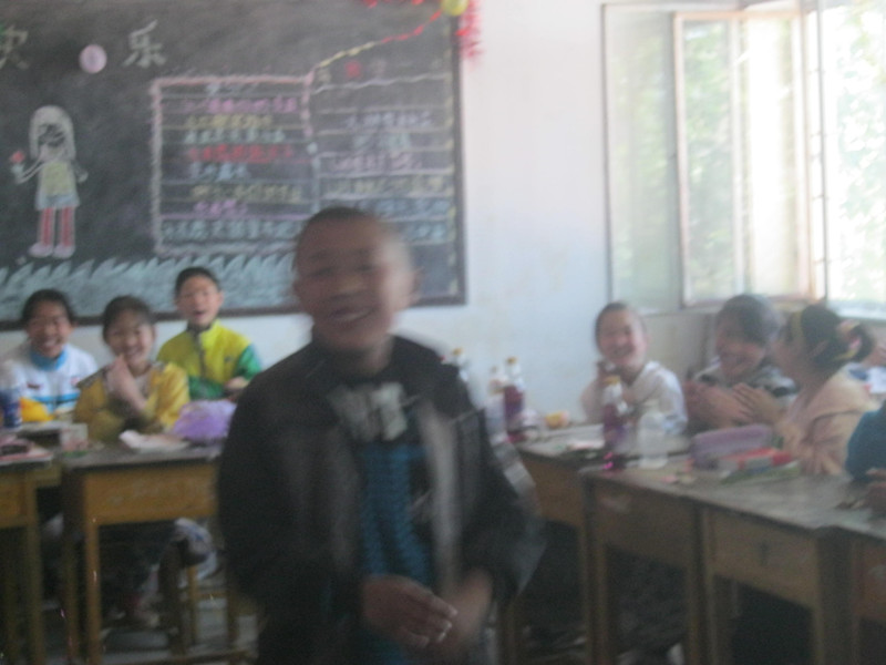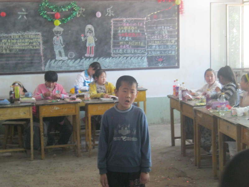 教师已经把教室装饰的非常漂亮,气球和彩带布满了整个教室。班里的学生们来的很早,有的还在排练自己的节目,有的整理晶晶纸,准备"偷袭"老师,有的坐在座位上,等着节目的开演。