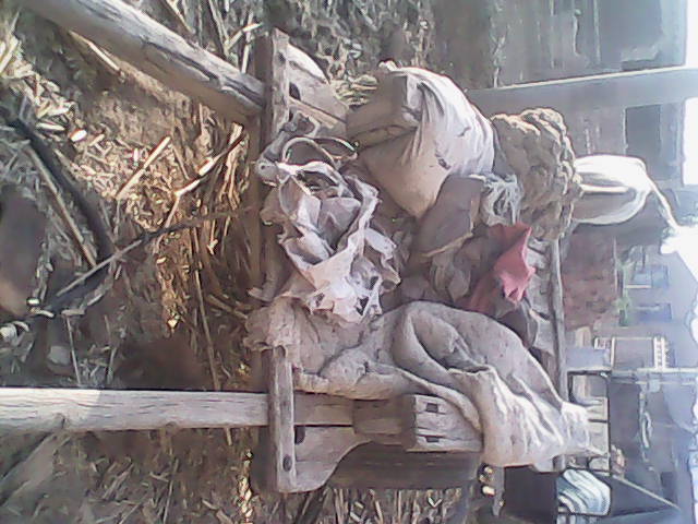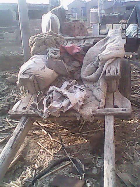 架子车这种农具只有我们老家有,在十年以前架子车是当地农民最好的运输工具,每家每户都有这样的的一个架子车,不论是往地里面运化肥或拉麦子都用它。