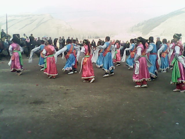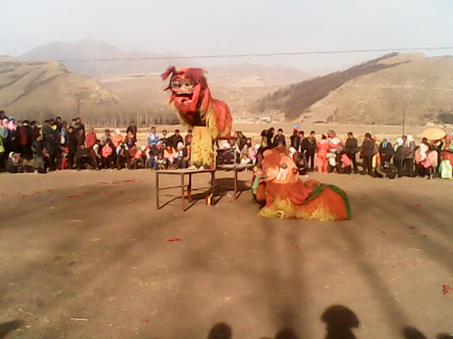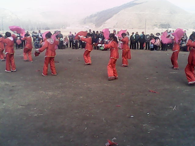 每年的正月里,我们村总会组织村民参加社火队,并且到附近的几个村子或县城上演出。社火队,是明间的一种艺术形式。它的节目丰富多彩,形式各 异,有传统的秧歌舞,也有于时代同步的流行元素。节目开始之前,有一个集体活动,那就是拉满场。它的目的有两个:一是为了将场子拉开,二是为了集体亮相,给观众一种整体感。它开始之前需要灯官老爷的吉祥语,当吉祥语说完之后就该集体一起闹新年了。各色的服饰,各样的打扮无不展示着西部人民对生活的热爱。他们扭着,他们笑着,在鼓声中踏着节奏,舞出了他们内心的喜悦。